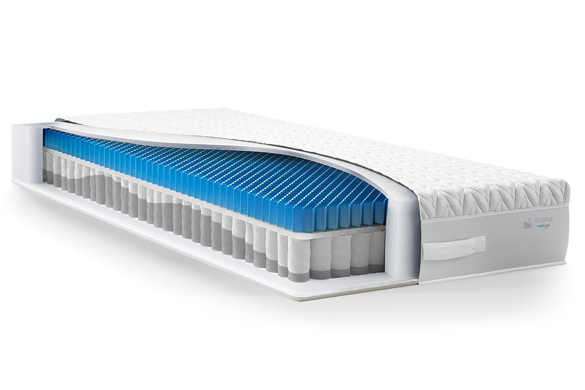 Das einzigartige Material IntelliGel®, das Sie nur in Svane® Betten bekommen, ist sorgfältig konstruiert, um Ihnen einen besseren Schlaf zu geben. Das Gelmaterial hat eine ganz spezielle Form, ein Rautennetz, das so konstruiert ist, dass es abstützt und zugleich auf Druck nachgibt.