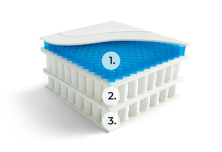 Integrated mattress topper with the unique combination of 6 cm IntelliGel and our soft and cocooning foam: Softec. The unique IntelliGel material ensures that you are always lying in an ergonomically correct position and get optimal sleep quality.