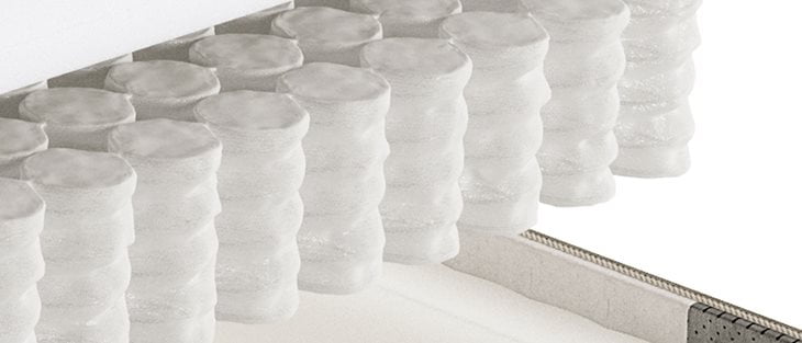 18 cm herdede posefjær av høy kvalitet. TrioZone har en mykere sone for skuldrene og en fastere sone for støtte for midjepartiet.